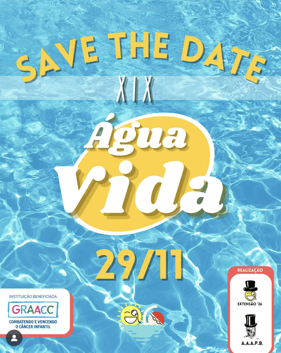 Vem aí mais uma edição do Água Vida, o tradicional campeonato de natação beneficente promovido pela Associação Atlética Acadêmica Pereira Barretto (A.A.A.P.B.) da Escola Paulista de Medicina!