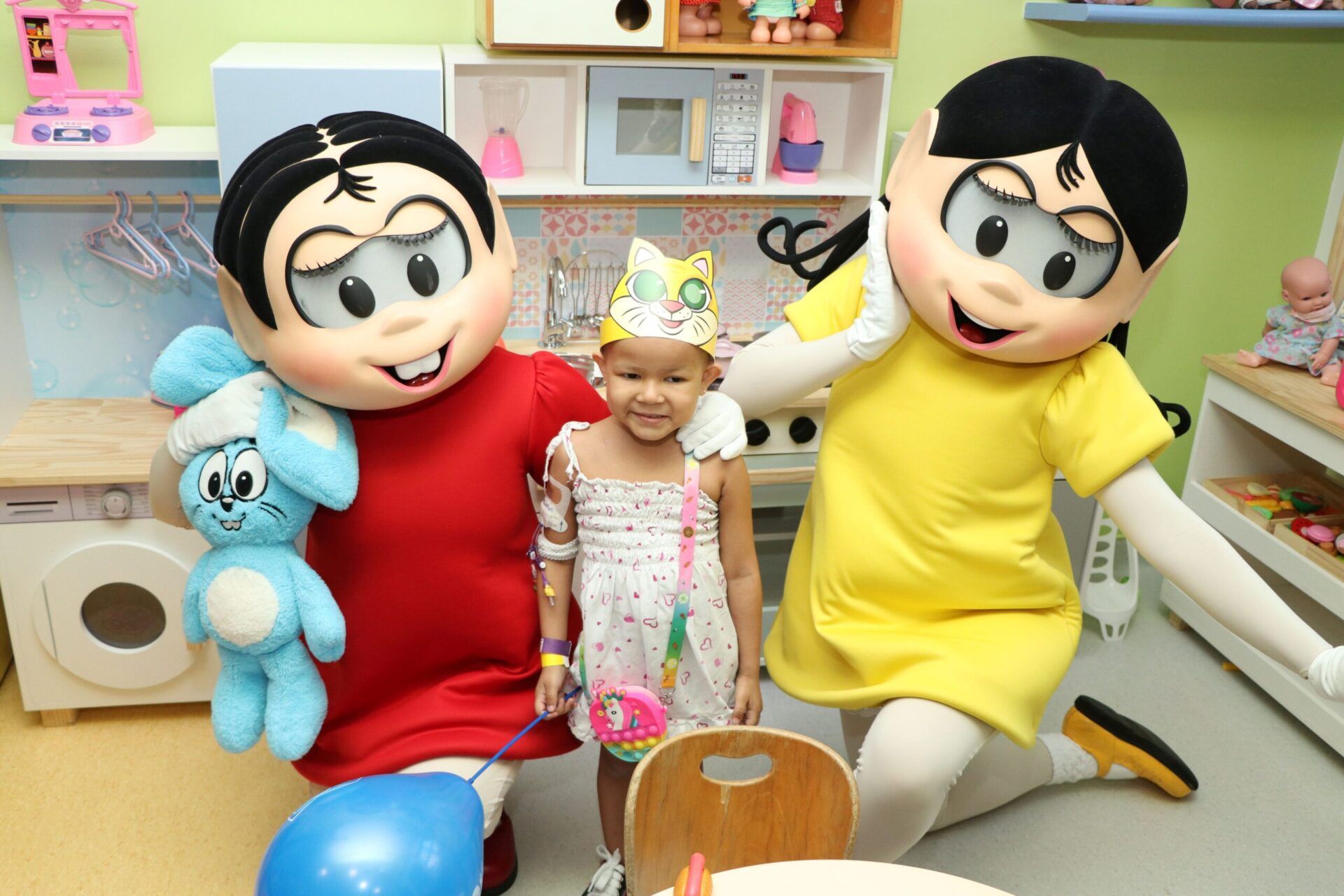 A ação contou também com a presença especial da Mônica e da Magali, que trouxeram alegria aos nossos pacientes, reforçando, de forma lúdica, a importância da campanha para a saúde ocular infantil.