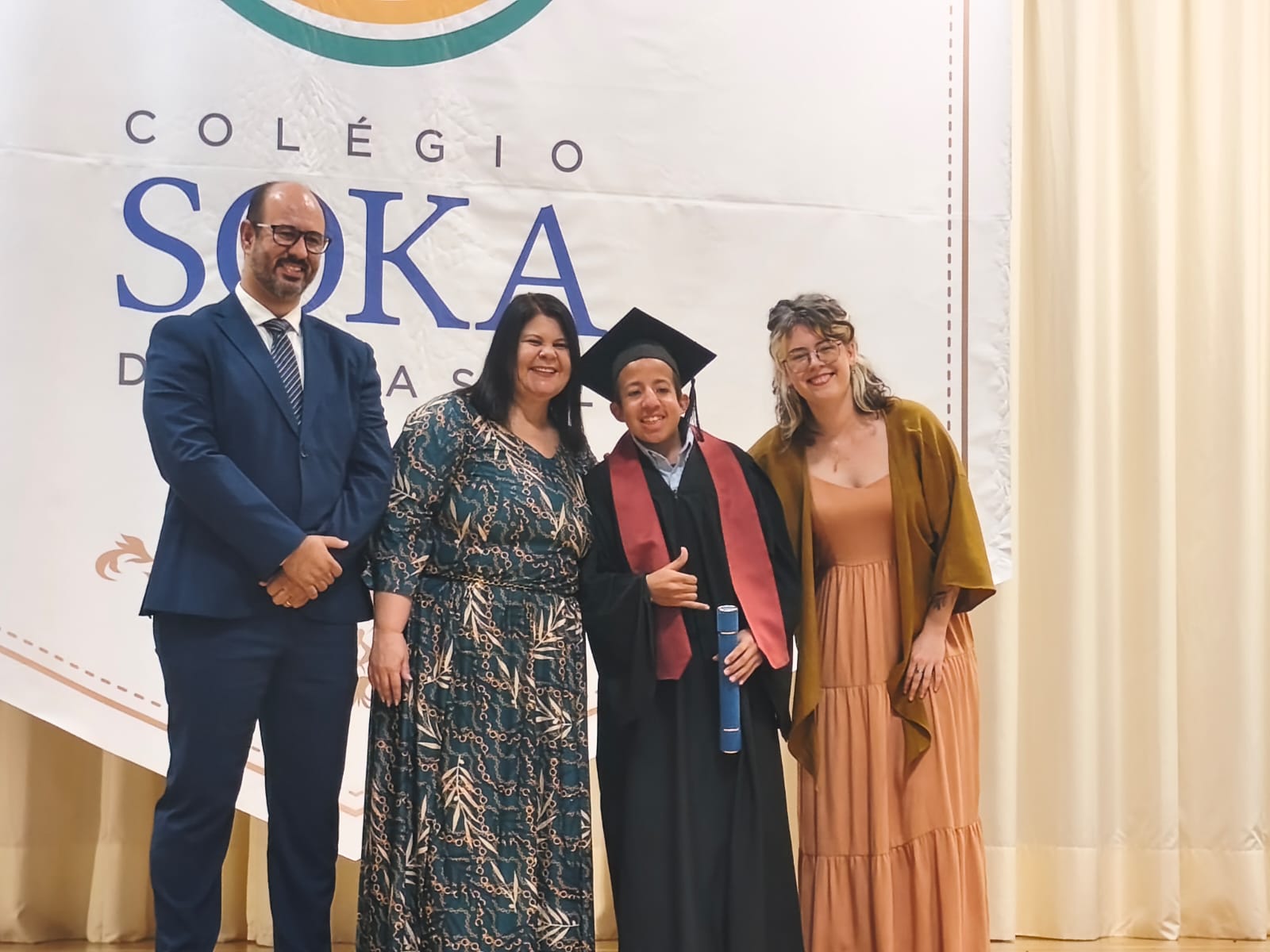 A escola também não parou. Nos anos em que esteve em tratamento, ele estudou com os professores da Escola Móvel, sempre com o crachá e a mochila, para se sentir “na sua sala de aula”. A equipe do hospital entrou em contato com sua escola de origem, garantiu que ele acompanhasse o conteúdo programático e ele nunca reprovou. Pelo contrário: seguiu avançando, no seu ritmo, com apoio, dedicação e muito esforço.