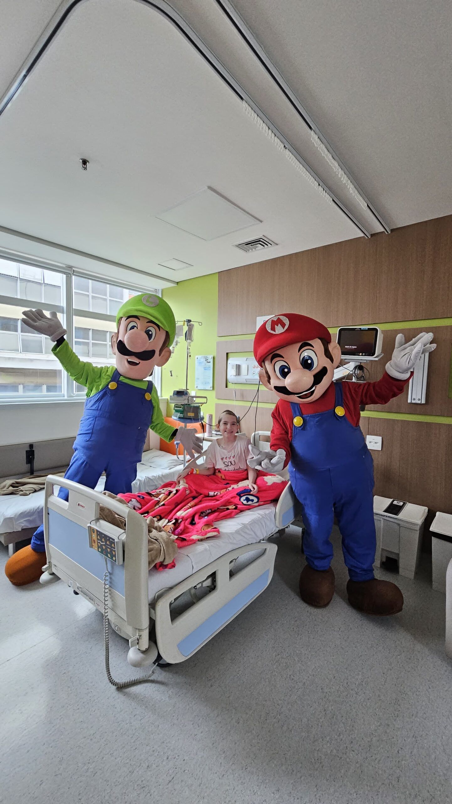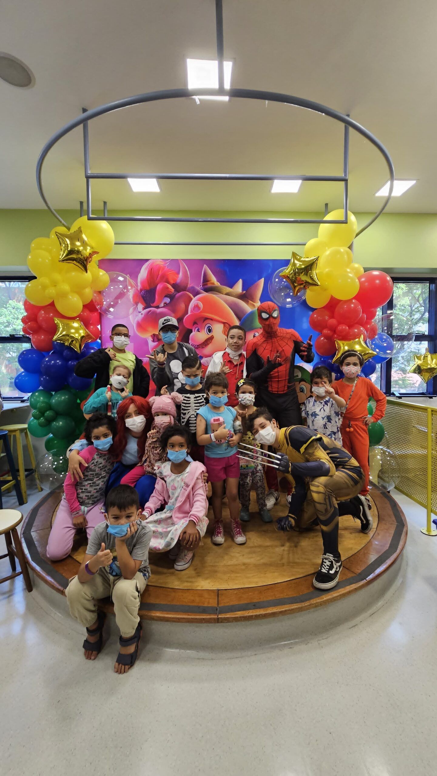 Mas as surpresas não pararam por aí! Para deixar a comemoração ainda mais especial, contamos com a presença de super-heróis, da influencer e gamer Leiltz e dos personagens do Super Mário Bros, Mario e Luigi. Os pacientes e suas famílias tiveram a oportunidade de tirar fotos, ganhar autógrafos e viver momentos inesquecíveis ao lado de seus ídolos.
