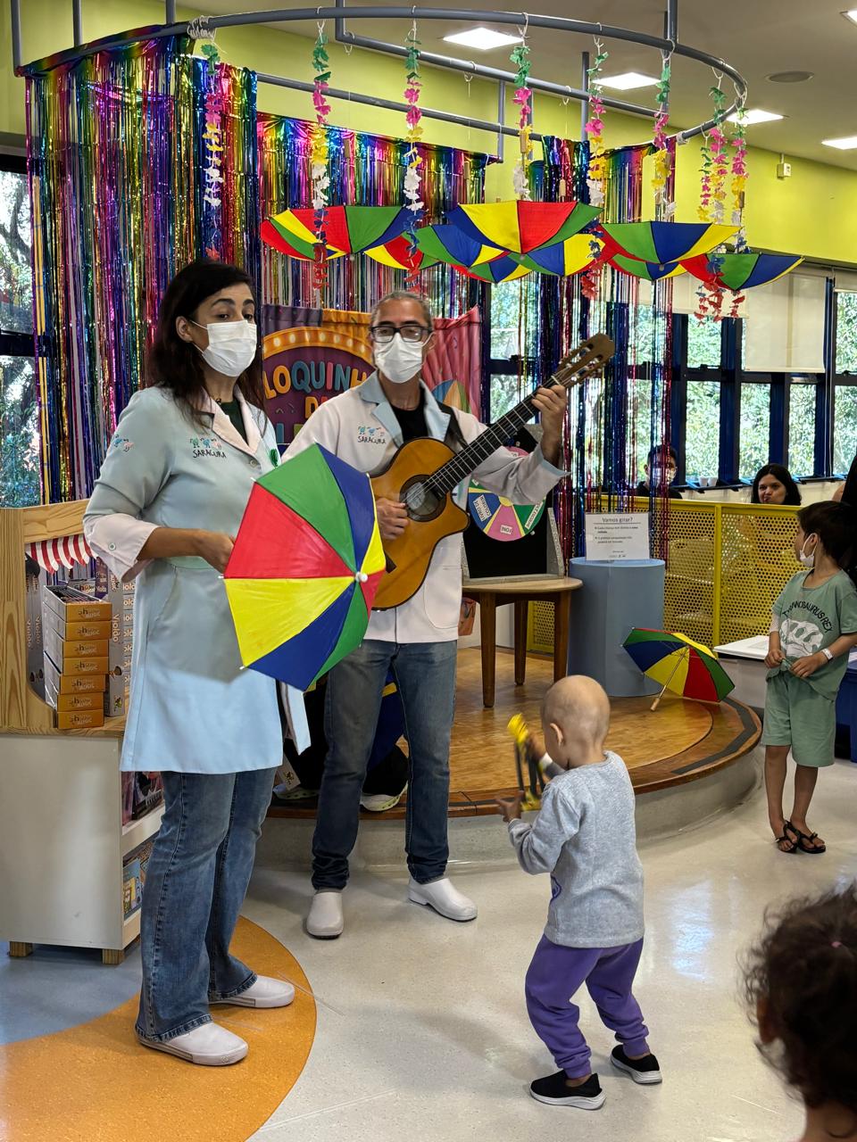 A celebração foi conduzida pelo grupo Saracura, que animou o hospital com muita música e interação. Os grandes protagonistas da festa foram nossos pequenos pacientes, que participaram como instrumentistas e receberam violões infantis para fazer parte dessa experiência pensada especialmente para eles.