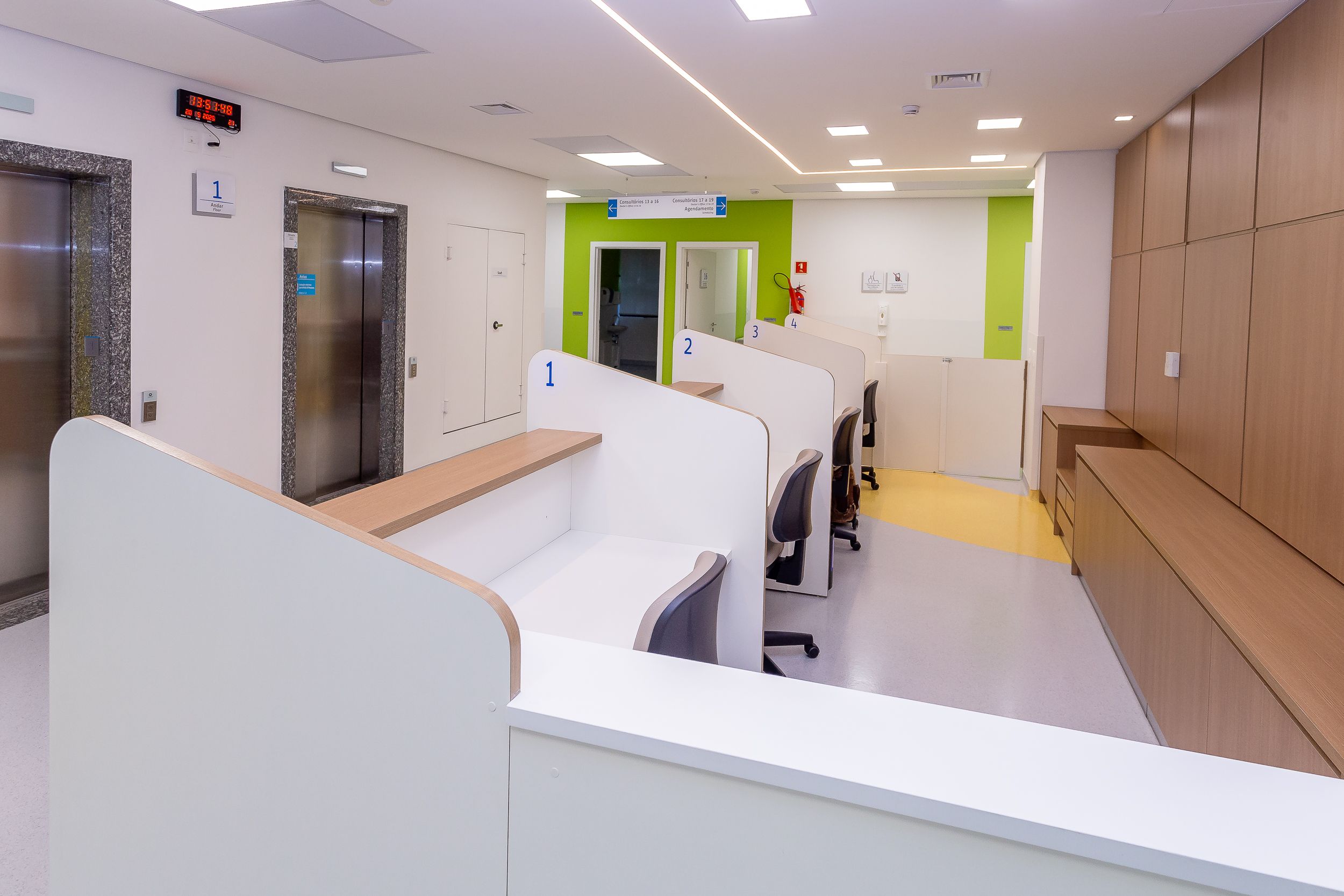 A recepção do ambulatório também foi reformada, tornando-se um ambiente mais acolhedor e funcional, alinhado ao nosso compromisso com um cuidado cada vez mais humanizado desde o primeiro contato com o hospital.