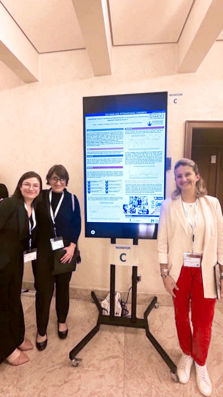 “No GRAACC, os cuidados paliativos são essenciais para garantir conforto e qualidade de vida de nossos pacientes, indo além do controle da doença, oferecendo suporte integral às nossas crianças e adolescentes e suas famílias. Nossa abordagem multidisciplinar e humanizada integra o alívio de sintomas físicos e emocionais com apoio psicológico e social desde o início do tratamento da doença”, explica Dra. Carlota Vitoria Blassioli, nossa oncologista pediátrica especializada em medicina paliativa pediátrica que esteve no congresso, junto com a nossa residente de Oncopediatria, Dra. Angela Carvalho Grassato, e nossa enfermeira especialista em cuidados paliativos, Carolina Kasa.