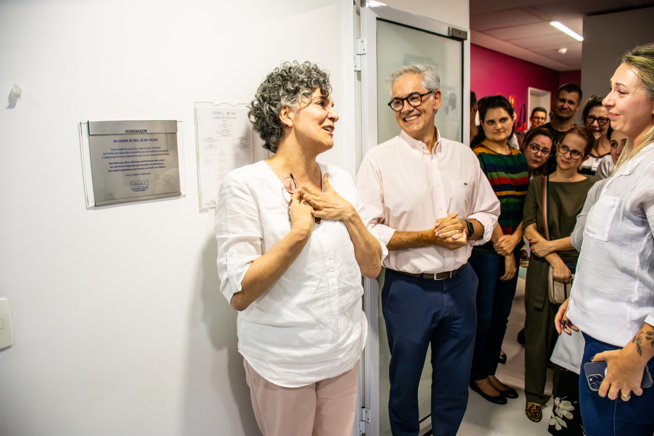 No dia 29 de janeiro, realizamos uma homenagem em reconhecimento à sua trajetória, com a presença do nosso fundador, Dr. Sergio Petrilli, do nosso CEO, Dr. André Negrão, da nossa diretora médica assistencial, Dra. Monica Cypriano, além de colaboradores e convidados. Como forma de reconhecimento permanente, uma placa foi instalada no Laboratório de Genética, simbolizando a relevância de sua atuação e a marca deixada na história do GRAACC.
