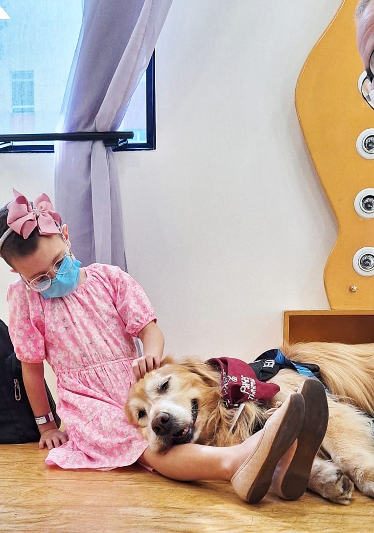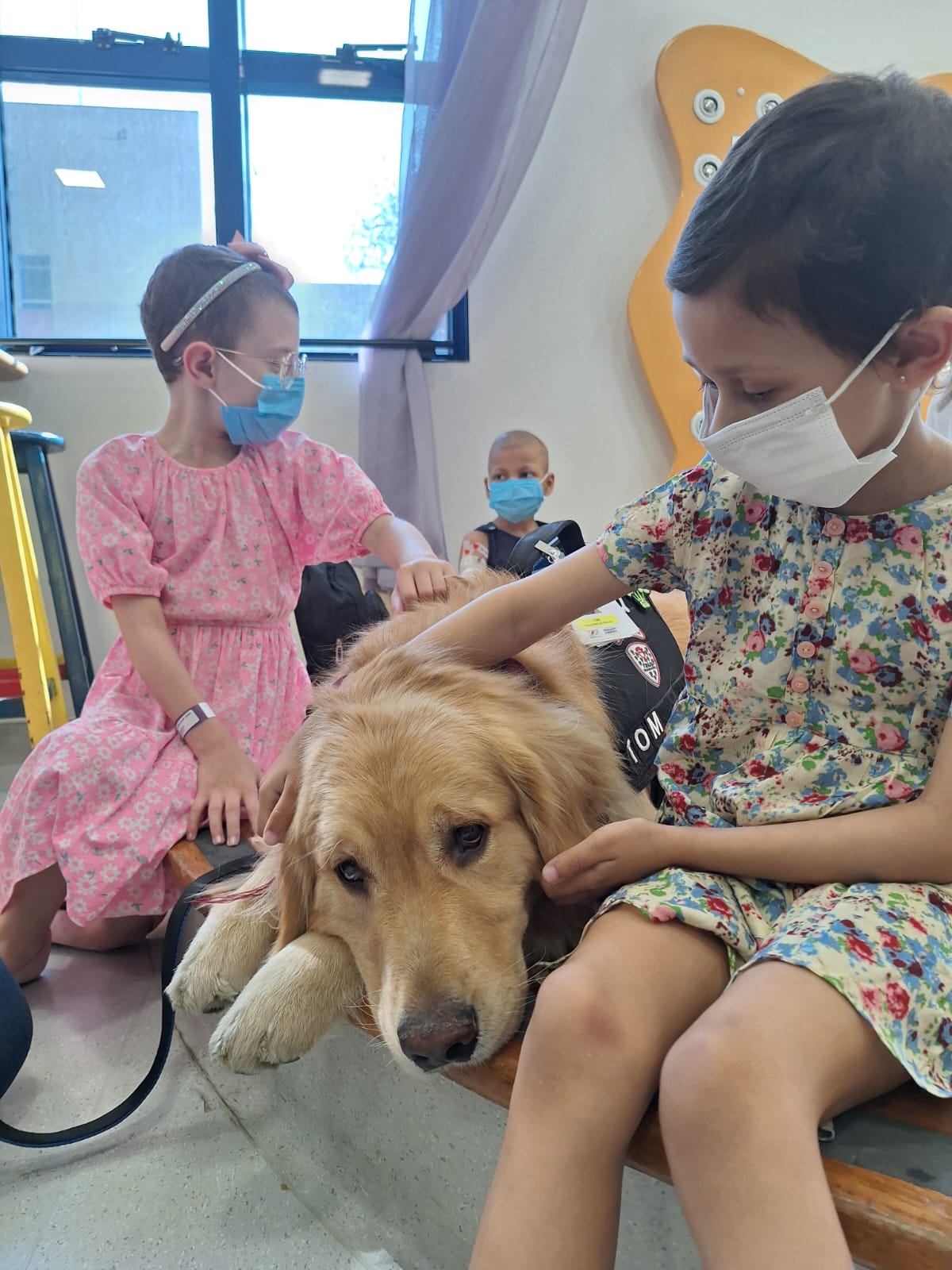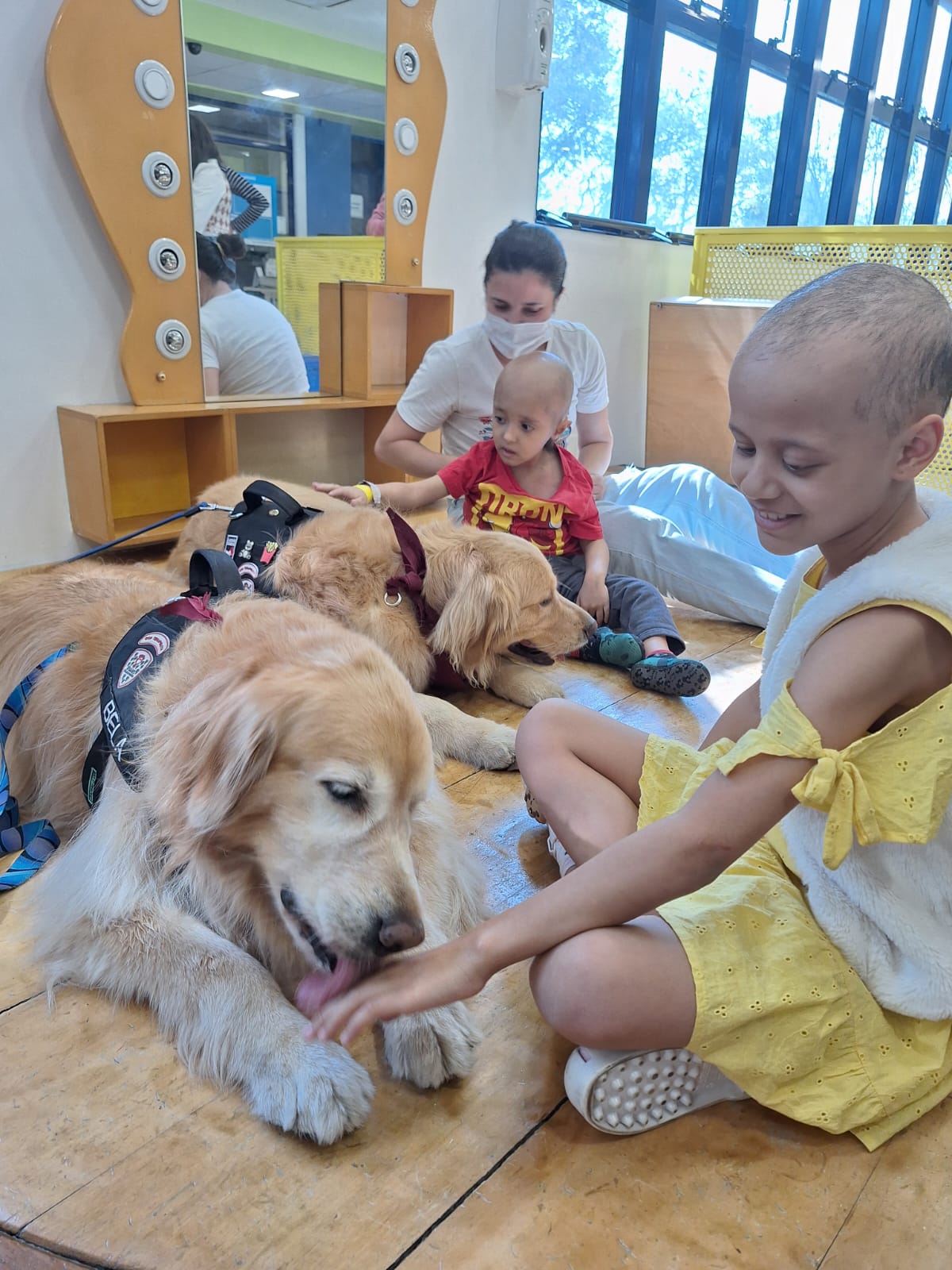 Ontem, 20 de agosto, os cães da raça Golden Retriever, Bela e Tom, estiveram novamente em nosso hospital proporcionando alegria aos nossos pacientes, responsáveis, voluntários e colaboradores.
